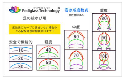 巻き爪度数表を用いて、巻き爪の程度を計測いたします。